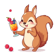 Funny Squirrel Cocktail Digital Art: Berry Juggling Whimsy for Your Walls, Gift